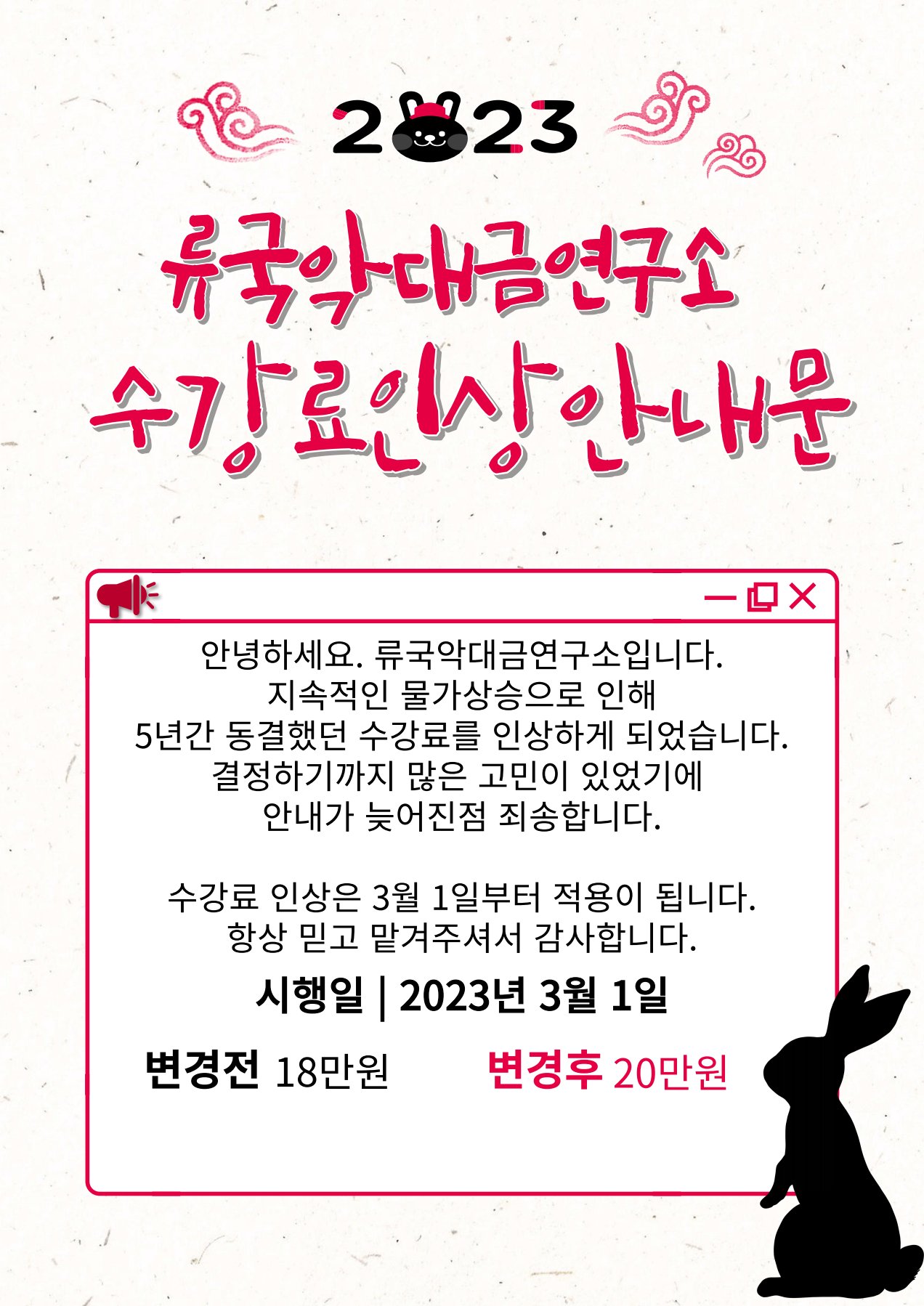 *2023년 3월부터 신규 학생은 변경된 수강료로 적용됩니다.
