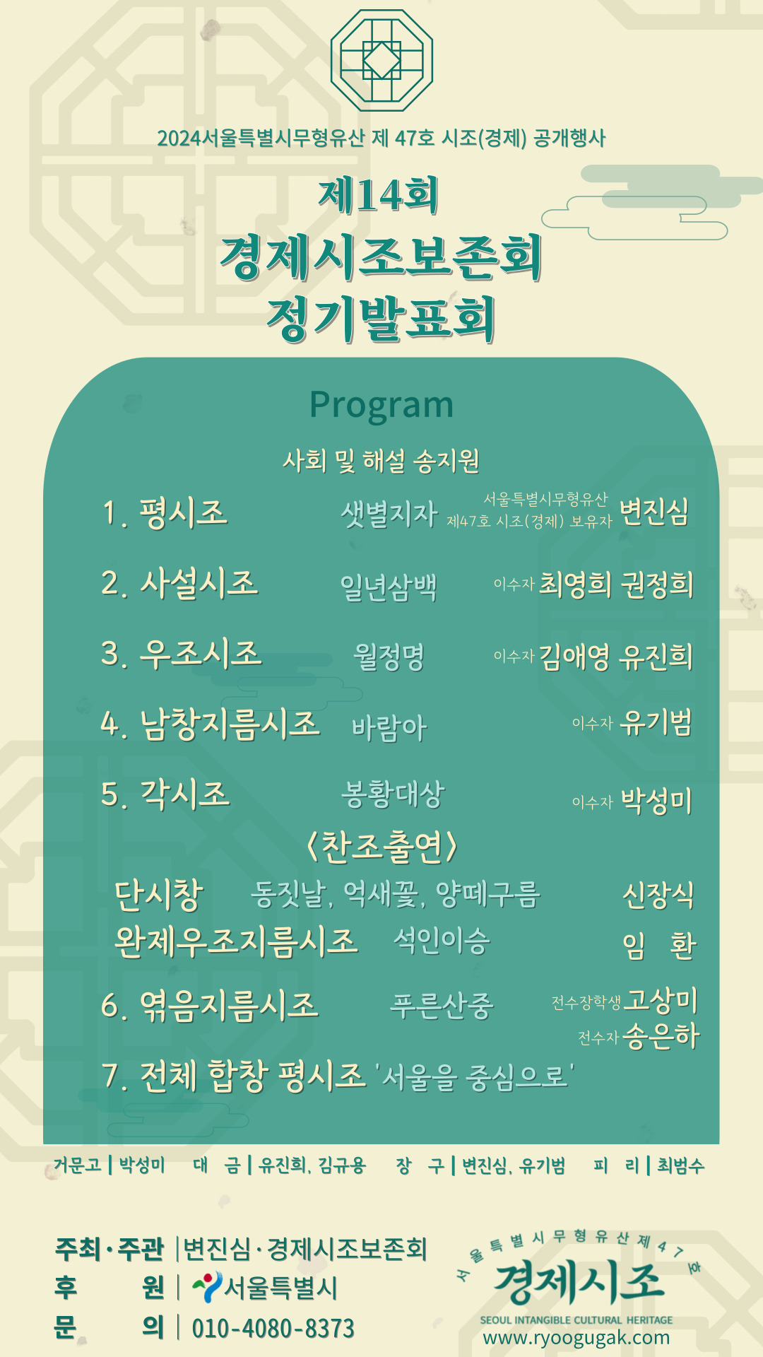 | 서울시무형문화재 제47호 경제시조 공개행사 제13회 경제시조보존회 정기발표회 (0) | 2023.10.21 |