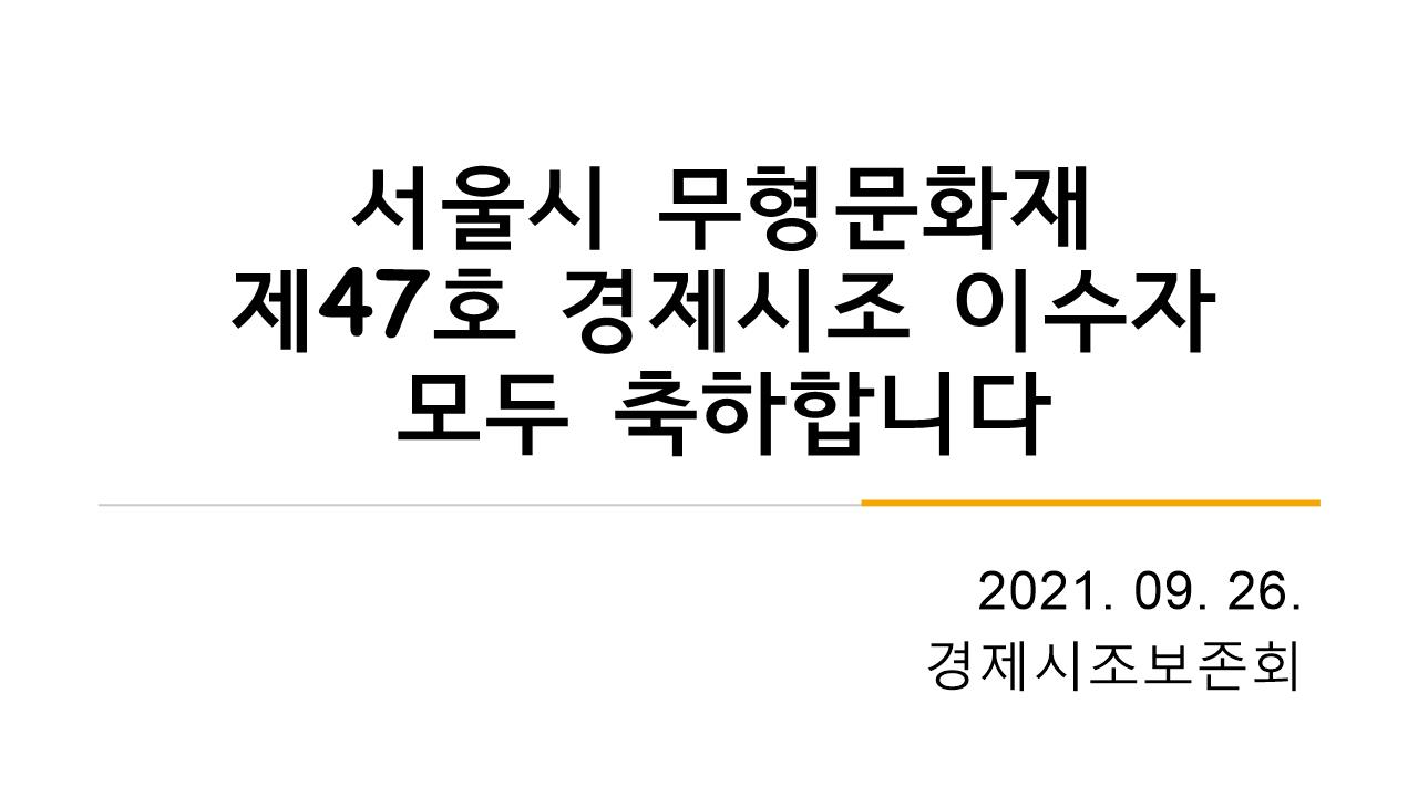 | 서울시무형문화재 제47호 경제시조 시니어특강 (0) | 2021.09.26 |