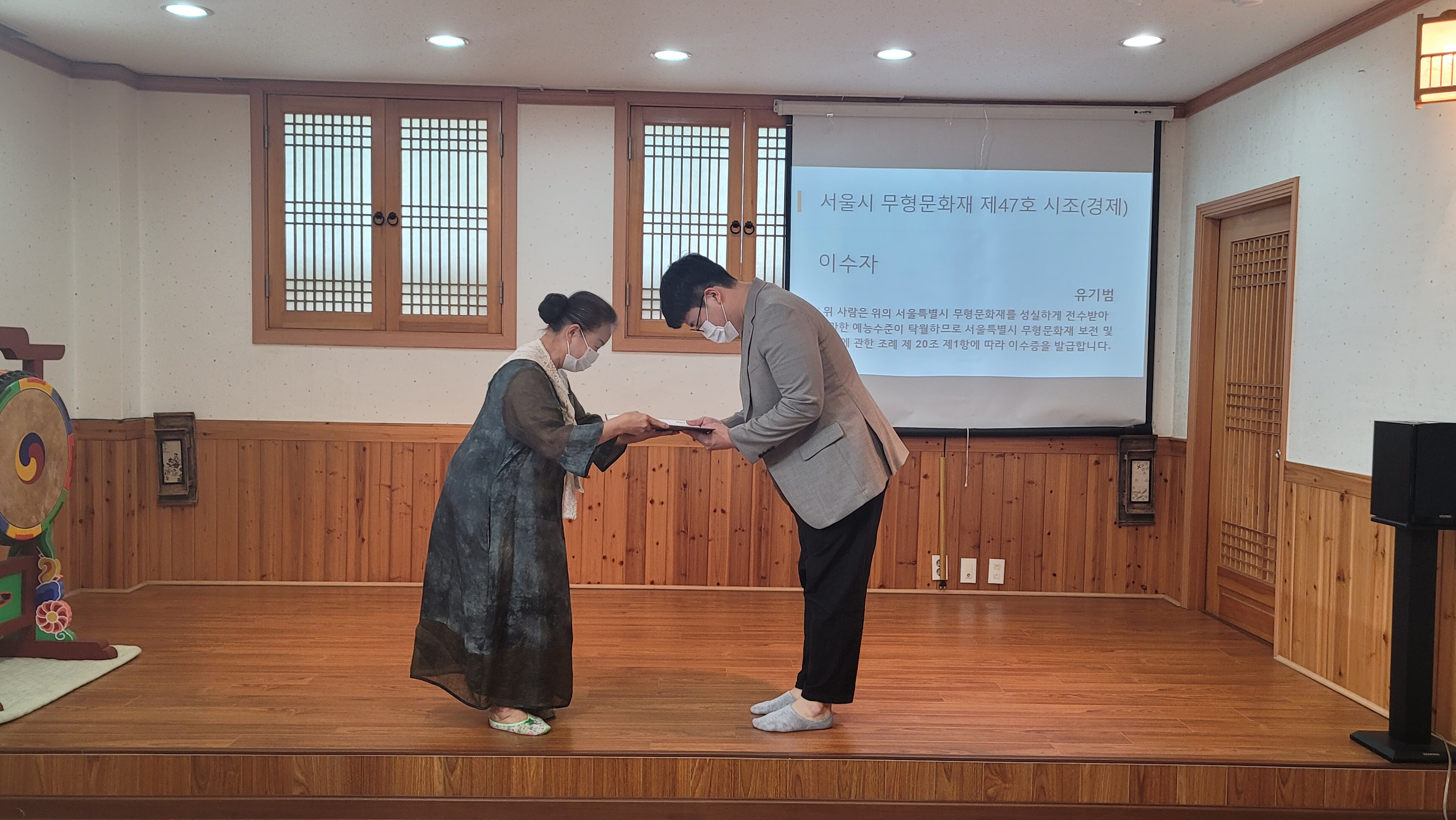 | 서울시 무형문화재 제47호 시조(경제) 이수자 이수증 수여식 (0) | 2021.02.27 |