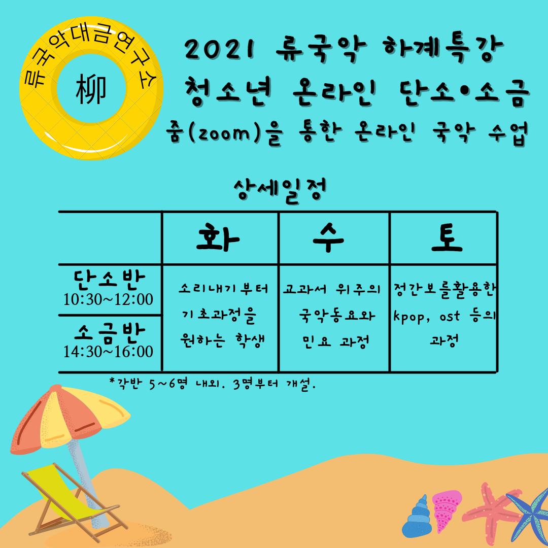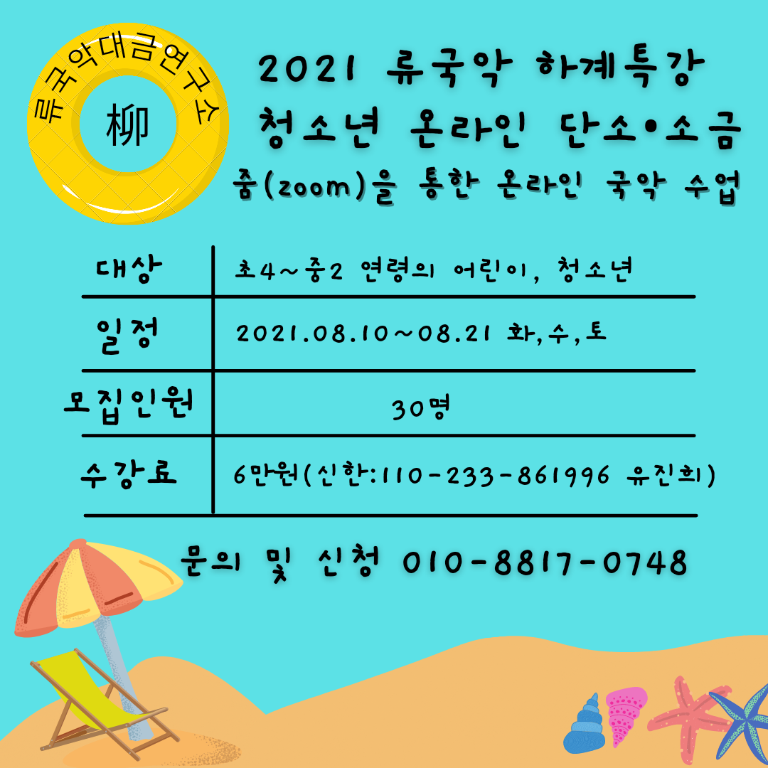 <2021년 柳(류)국악대금연구소 여름방학 특강 어린이·청소년 온라인 단소·소금>