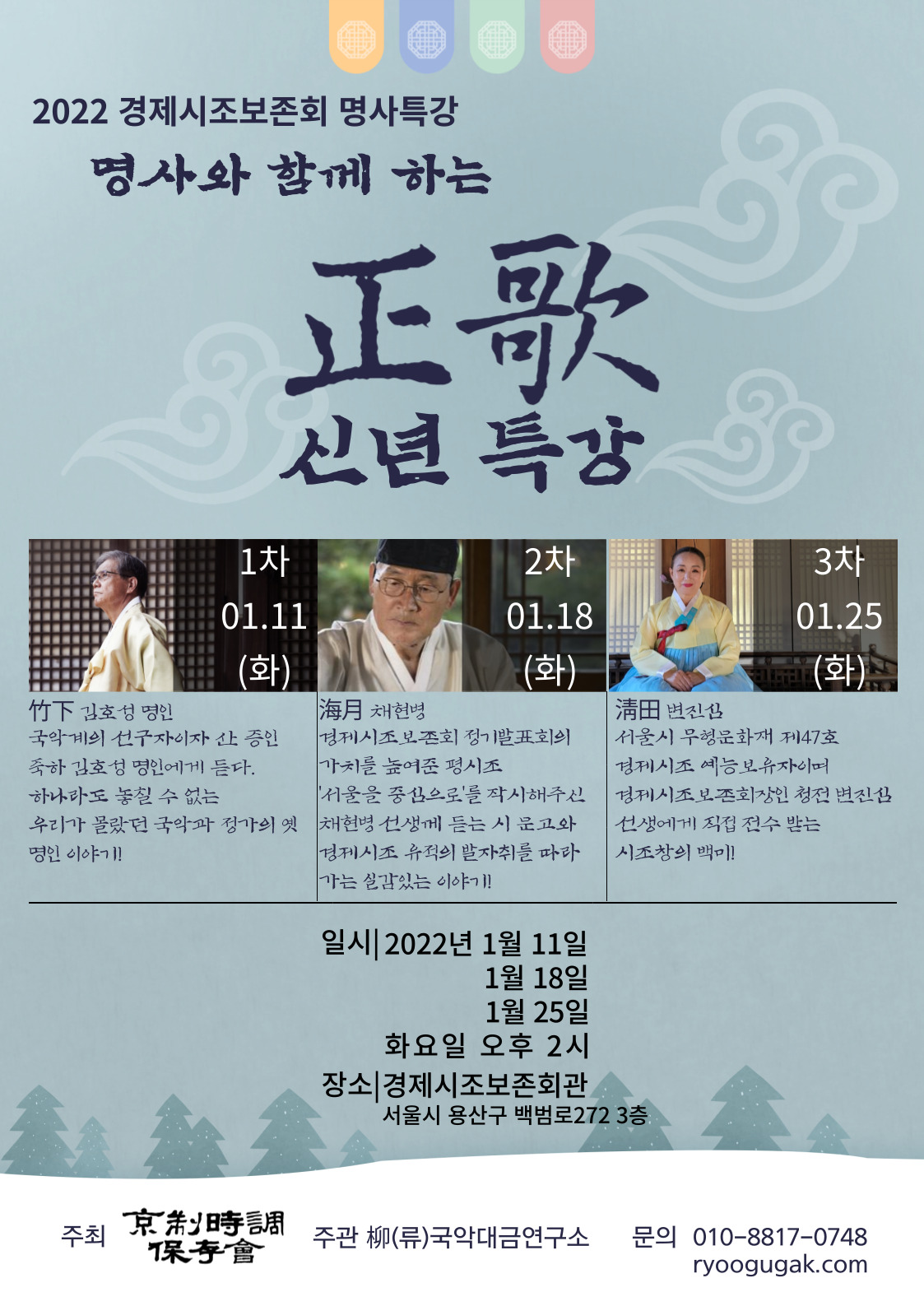 경제시조보존회에서 주최하는 명사특강과 함께하면 좋겠습니다.