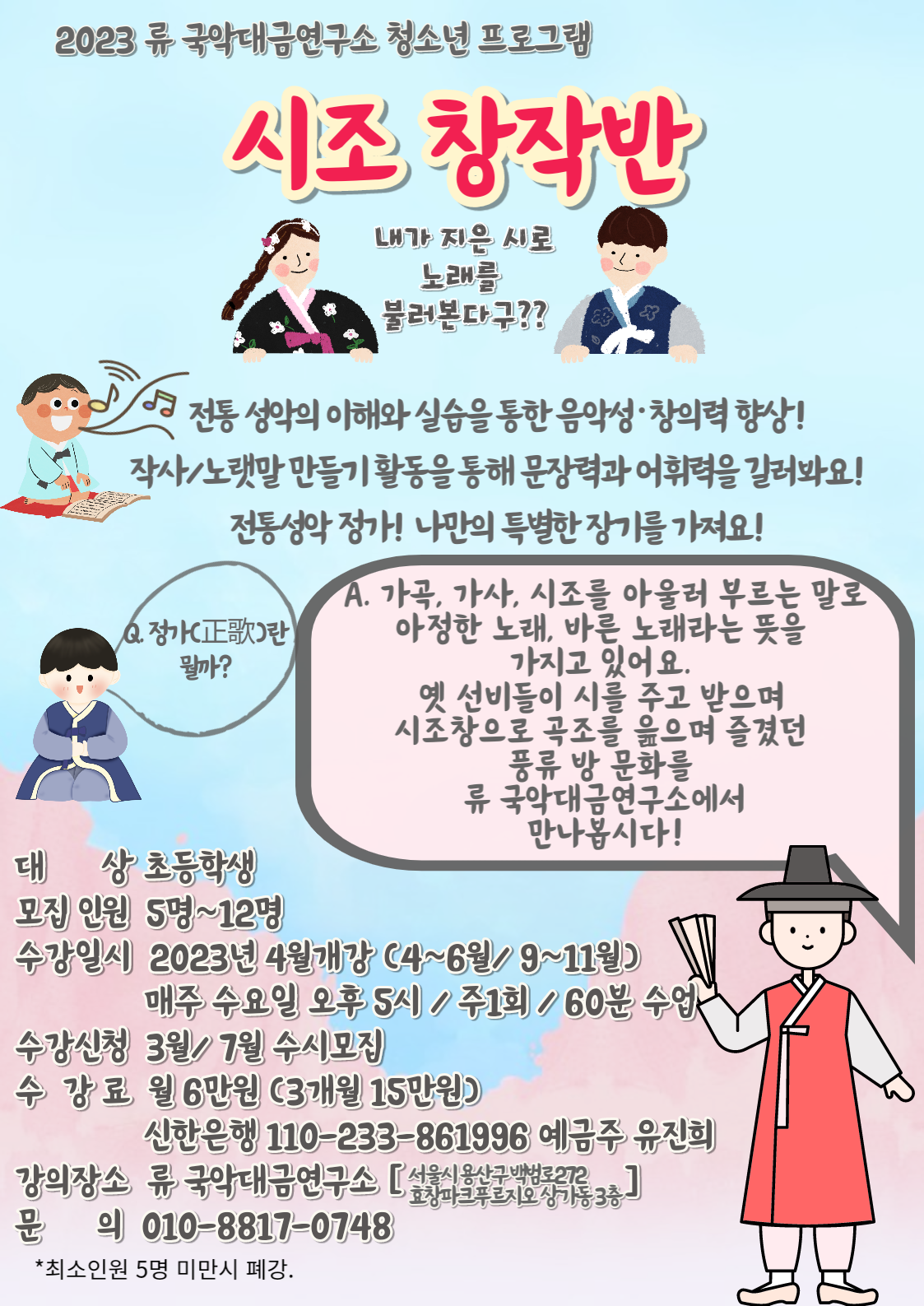 창의적인 사고에 도움이 되는 창작 시조창 수업입니다.